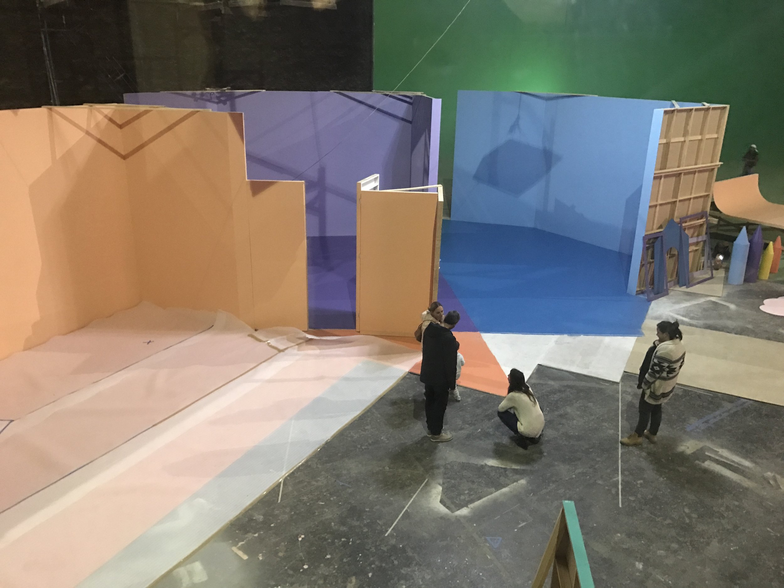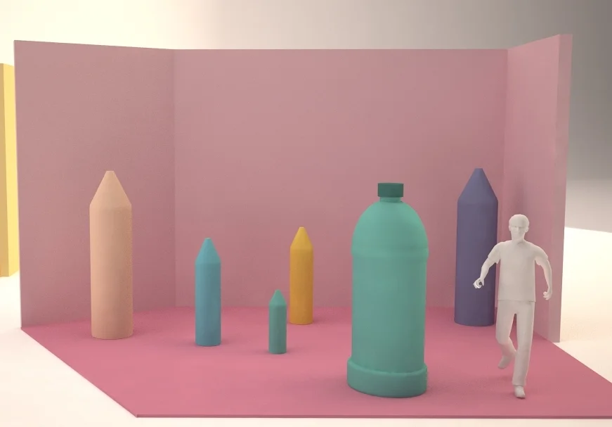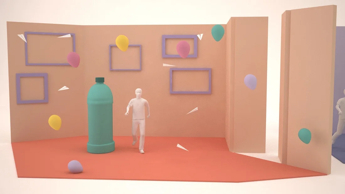 Because of the complexity of shooting each spot in one take, there was a lot of pre-visualization and rendering work required so that we could figure out the spacing of the sets and timing of the practical effects, camera moves, lines to camera and visual gags.